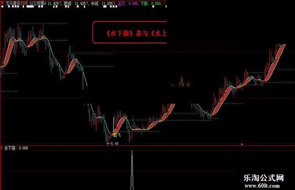 《多金叉》发出后,副图和选股源码已经发送,麻烦需要的爬楼梯吧。今天再发一个《水下游》,原理与《水上漂》差不多,区别在于《水上漂》是MACD零轴上金叉、量金叉、价金叉;《水下游》是MACD零轴下金叉和量金叉的原理。指标加密,不喜勿下。