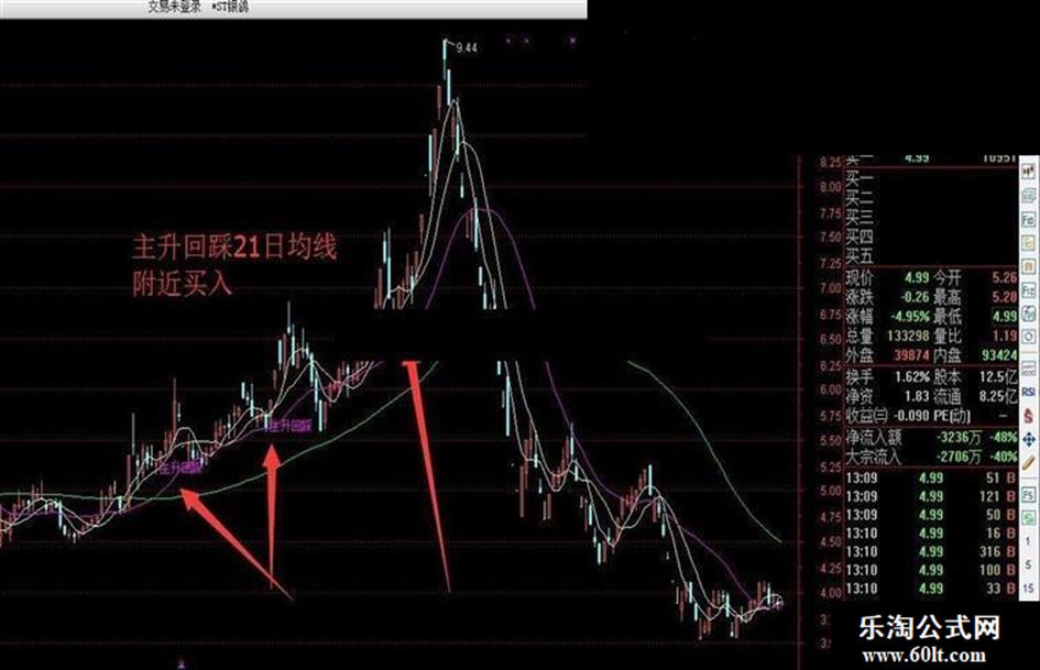 DRAWTEXT( 金股>=1,L,'主升回踩'),COLORMAGENTA;