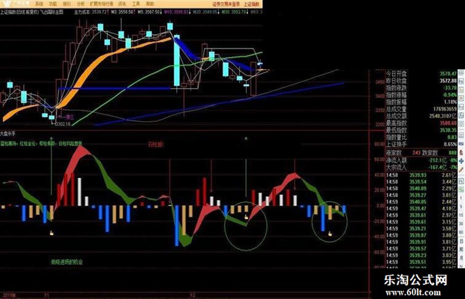 DRAWTEXT_FIX(C=C,0,0.02,0,'蓝柱离场,红柱全仓,棕柱低吸,白柱风险显现 '),COLORGREEN;