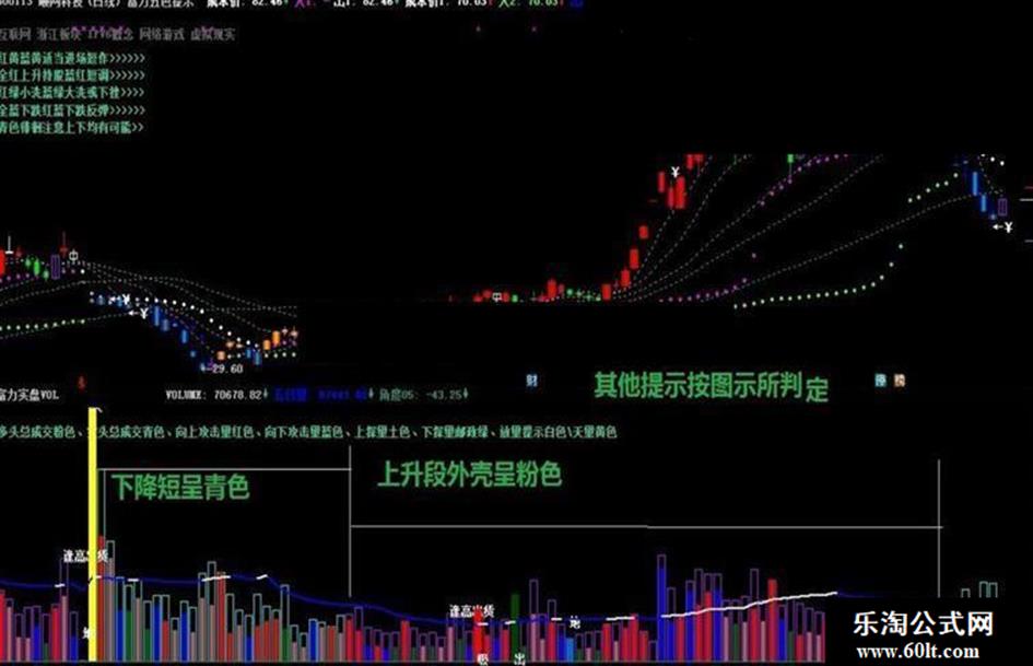 DRAWTEXT_FIX(1,0,0.07,0,'多头总成交粉色、空头总成交青色、向上攻击量红色、向下攻击量蓝色、上探量土色、下探量邮政绿、放量提示白色\天量黄色'),COLOR99CC32;
