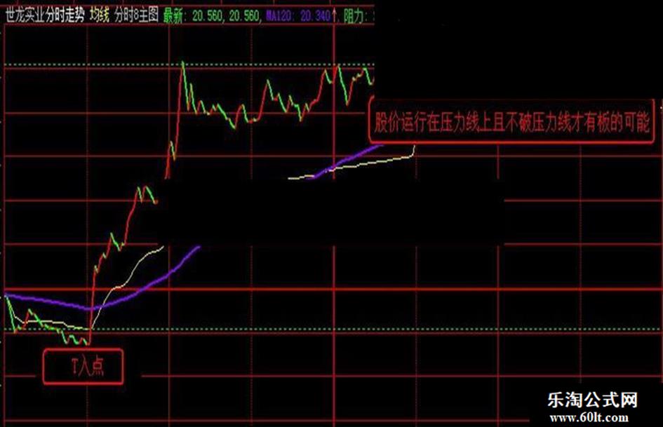 《分时二线》中的两条线,是当日股价支撑、压力线,是你做T高抛低吸的参考线。对于突破压力线的个股,且一直在压力线上运行,才有板的可能;对于跌破支撑线没有站上支撑线的不可贸然接筹。源码加入分时主图即可。