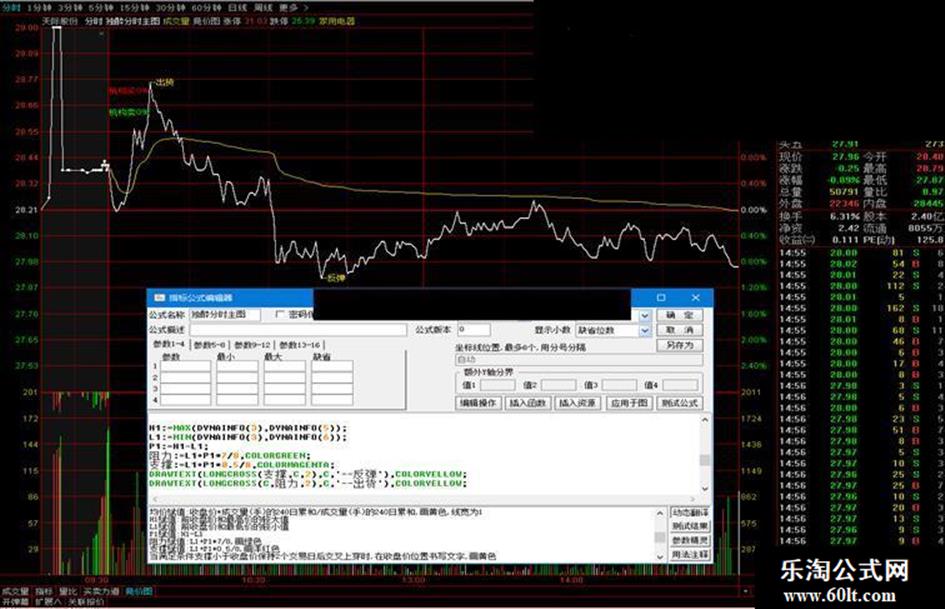 假如天际股份下午跌穿上午最低值,紫色线会当即下移,上午“反弹”的信号也会消失,“反弹”信号会转移到新的最低价位置,如果屡创新低,“反弹”信号也会不断跟随变动位置,所以不明真像的吧友贸然进仓,极有可能要上交不少学费,因此各位在使用指标的时候一定要慎重,唯有经过实际验证或者研究源码之后才可选择操作!
