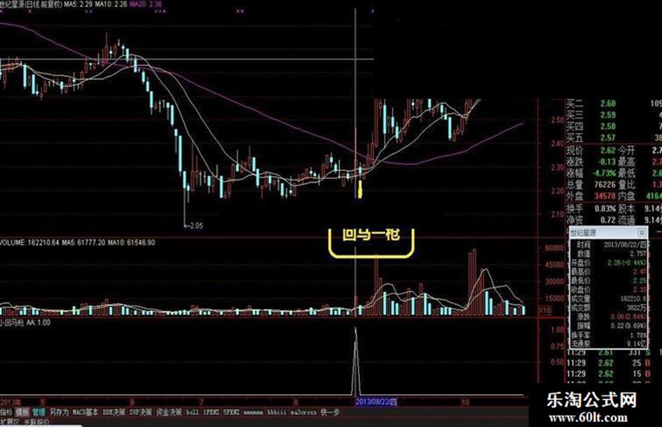 兵者,诡道也。讲的就是出其不意,攻其无备。该指标信号出现时表明上涨趋势已经建立,次日股价下探均线附近,常常是庄家假装撤退,然后就在我们散户不备时,庄家突然回马一枪,股价掉头向上,完成了惊艳一枪。