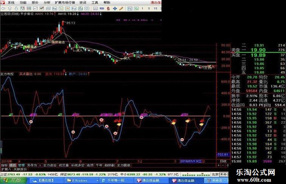 开始控盘:=STICKLINE((VAR6 <= (0 - 10)),0,(0 - 20),3.5,0),COLOR00AAFF;
