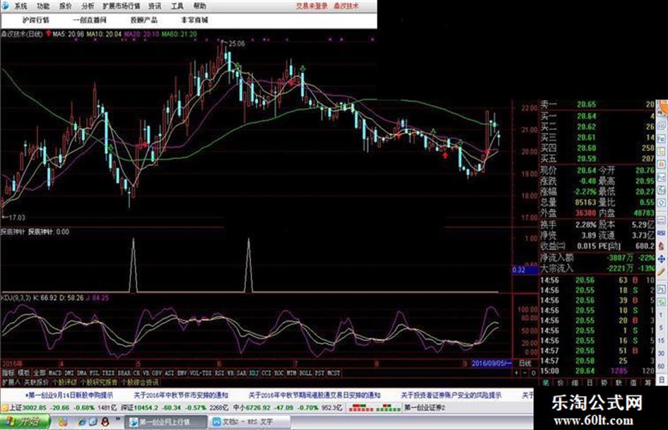 探底神针选股公式,如果低位选出,第二天出,成功率很高,金针探底形态我们都知道意味这什么