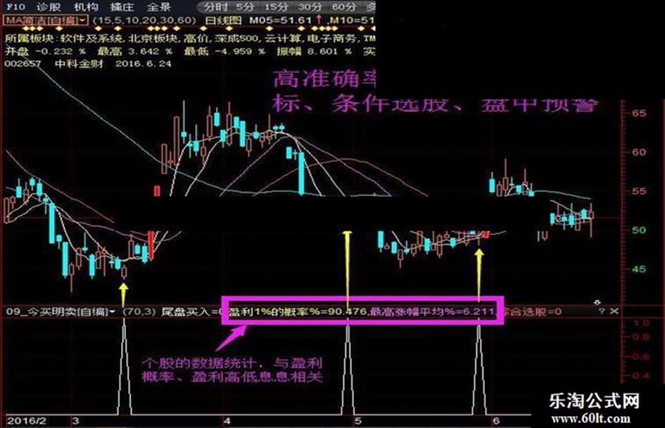 2. “盈利1%的概率”表示个股近两年/500个交易日(不足500个交易日统计上市以来的数据)按信号买入后,次日最高涨幅超过1%的(次数)比例。该指标值越大,实现盈利的可能性一般也越大。尽量不参与“盈利1%的概率”值小于75的个股。