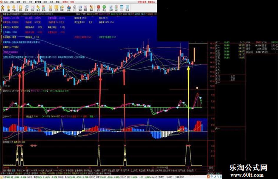 分享一个自己用来做为参考的指标公式,也可以选股用,如下图红色箭头部分为可以关注的,当出现黄金箭头连续信号时就得重点关注了。有未来,未来不是洪水猛兽,指标只是参考,并不是用一个指标就买卖股票了。。。。指标并非原创我只是搬运工。。。。。。。。
