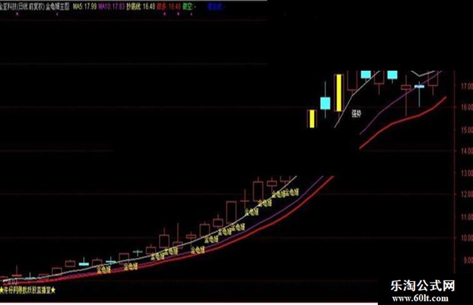 金龟婿战法定义:股价小阴阳线沿5日线爬升10-12天左右,一般是主力在获取背后利好缓慢推高建仓的一种操作手法,出现此形态个股随后有加速拉升过程,因此,金龟婿战法属于(5日线)低吸潜伏的一种跟随战法。个别主力有采取加速前的洗盘动作,大都不破10日线并快速收回。因此,金龟婿战法的操作中按照10日线作为止损点。 案例: 金亚科技,连续小阳爬升,随后加速拉升,股价从第一家金龟婿信号9元短期快速拉升至21.66元见顶。涨幅翻倍,可见金龟婿战法的威力。