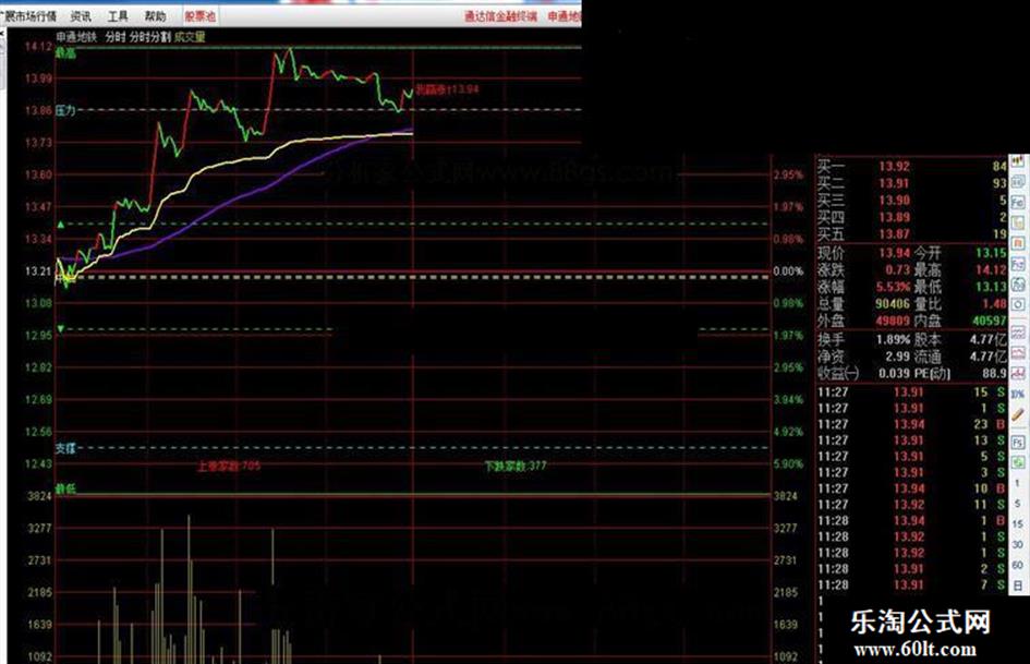 分时均价线:SUM(C*V,240)/SUM(V,240),COLORYELLOW,LINETHICK2;