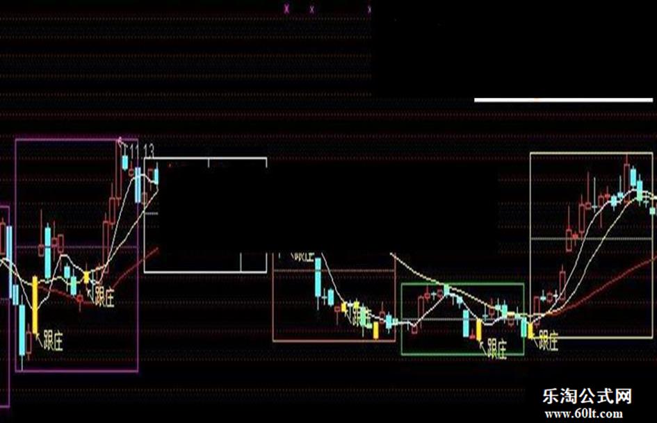 DRAWTEXT(FILTER(买=1,5),LOW-0.05,'↖跟庄'),COLORYELLOW;