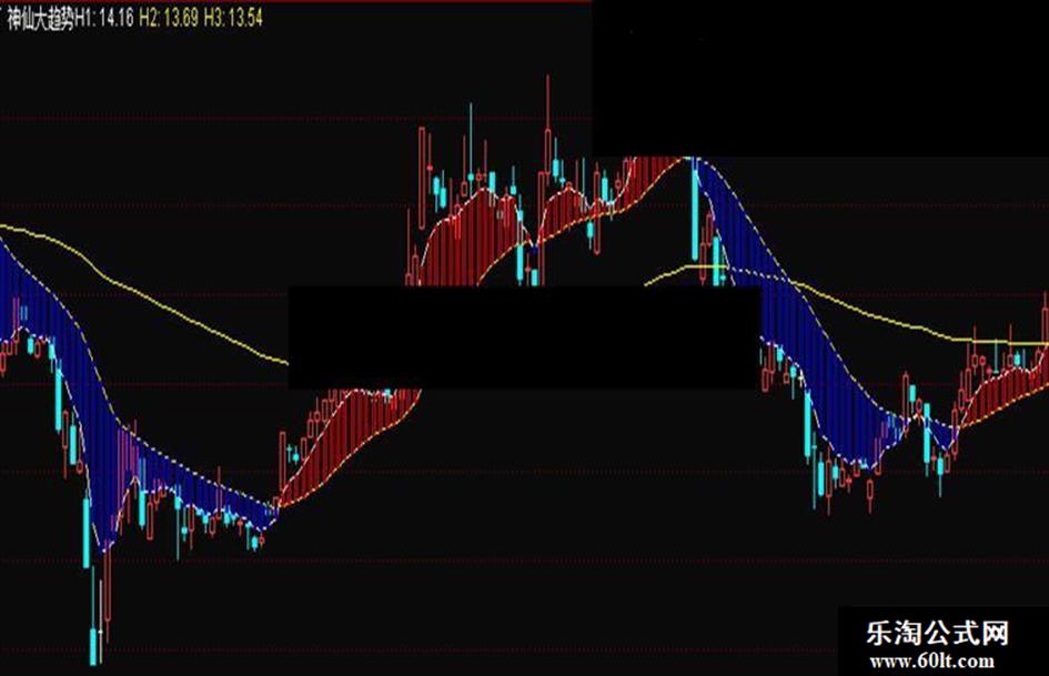 输出定义大趋势以及分类 大趋势:指数或股价经过一段时间的运行后,处在相对位置的平滑曲线H1和H2之间所形成的区域形态标识着本位趋势线所在的位置和运行方向,根据H1和H2的相对位置分为上涨趋势和下跌趋势,用H3与H1,H2的相对位置分为强趋势、弱趋势、中性趋势,这种用三个平滑曲线H1、H2、H3构筑的指数或股价分析模型就是我们说的大趋势.上涨趋势:当H1和H2形成金叉时,即H1上穿H2时所形成的趋势形态就是上涨趋势,说明指数或股价正处于上涨趋势中,并有望沿着原有的趋势继续惯性上涨.下跌趋势:当H1和H2形成死叉时,即H1下破H2时所形成的趋势形态就是下跌趋势,说明指数或股价正处于下跌趋势中,并有望沿着原有的趋势继续惯性下跌.刚才也说到H3的作用就是起到分辨趋势强弱的作用,具体可分为强上涨趋势, 强下跌趋势, 弱上涨趋势,弱下跌趋势,中性趋势 强上涨趋势:当指数或股价处于上涨趋势时候,H3位于上涨趋势的下方,即H1,H2,H3从上而下依次排列所形成的趋势形态就是强上涨趋势 强下跌趋势: 当指数或股价处于下跌趋势时候,H3位于下跌趋势的上方,即H3,H2,H1从上而下依次排列所形成的趋势形态就是强下跌趋势 弱上涨趋势: 当指数或股价处于上涨趋势时候,H3位于上涨趋势的上方,即H3,H1,H2从上而下依次排列所形成的趋势形态就是弱上涨趋势 弱下跌趋势: 当指数或股价处于下跌趋势时候,H3位于下跌趋势的下方,即H2,H1,H3从上而下依次排列所形成的趋势形态就是弱下跌趋势 中性趋势 :不管是指数或股价处于上涨趋势还是下跌趋势,只要是H3位于H1,H2之间,即按照H1,H3,H2或者H2,H3,H1两种排列方式都称为中性趋势。 大趋势公式 神仙大趋势H1:收盘价的6日指数移动平均