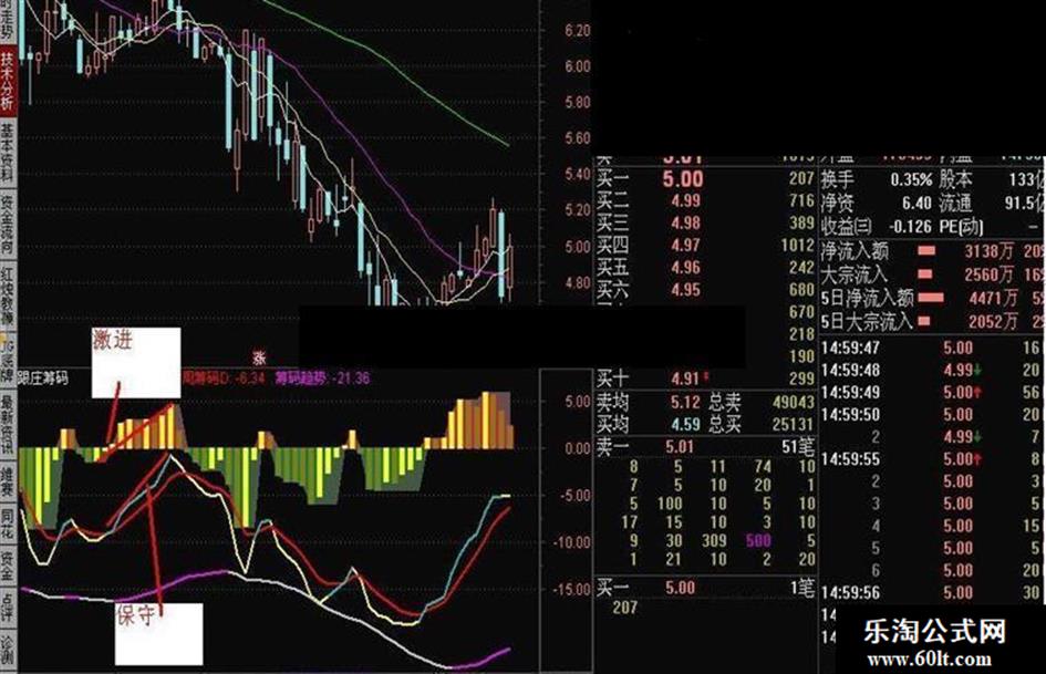 筹码:=(跟庄线-黄金线)/(COST(90)-COST(10))*100,COLOR00FFFF;