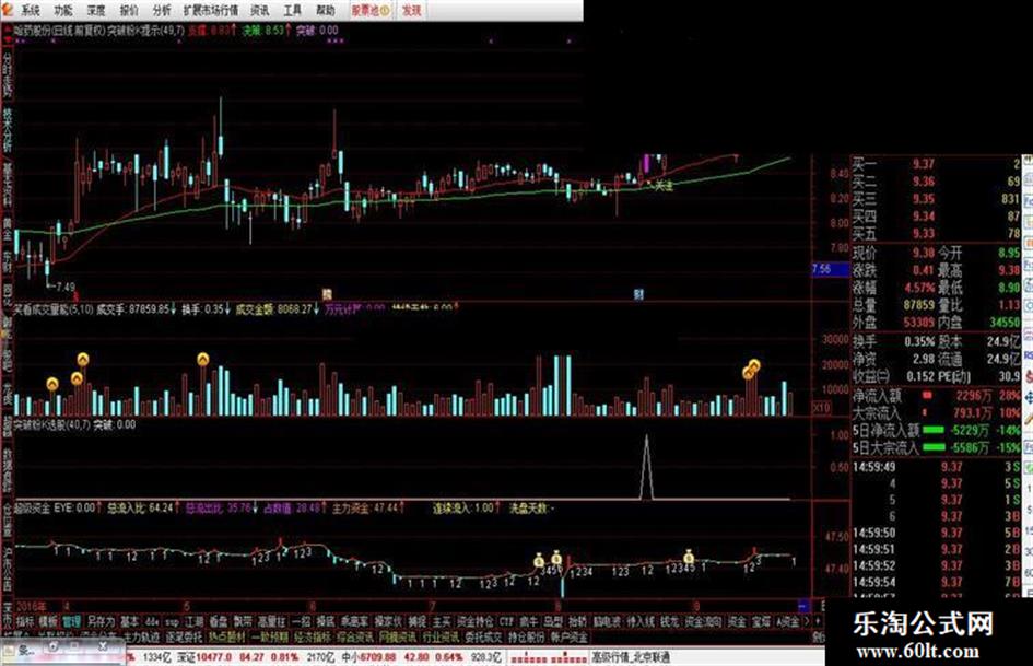 通达信【倍量主升浪】主副图/选股识别与假突破过滤难题适合追涨策略与突破型源码