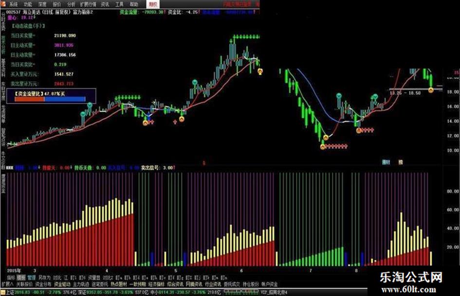卖出信号:IF(REF(持股天数,1)>0 AND 持股天数=0,3,0),STICK,COLORYELLOW;