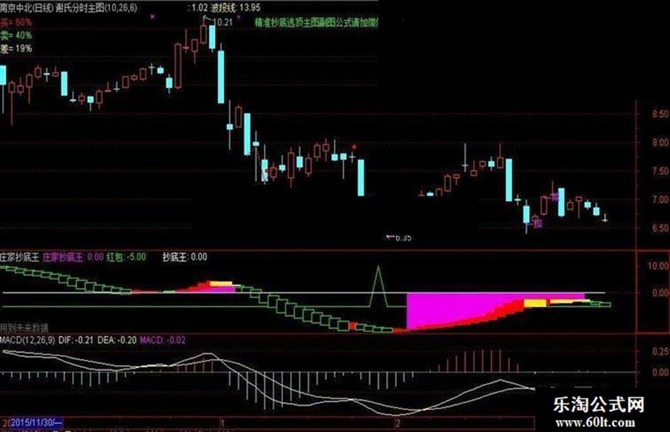 选股1:=-26;抄底:=-40;庄家抄底王:0,COLORFF00FF,POINTDOT;