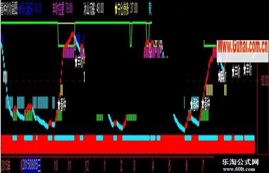 通达信春种秋收副图指标改编自一个老指标。指标有下方一条-10--0红色条,以确定底部和买入位置,上方有80,100二条逃顶线,以确定卖出的位置。中间有一条红色或蓝色柱,确定股票买卖的时机。指标使用方法简介:1,当下方红色条上出现蓝色点,且上方出现向上的红色柱可少量买入,当出现“春种”字时,加仓买入,持股待涨至80,出现“丰收”字时,宜减仓或清仓。2,如股价在80附近横盘震荡越过80,点红色柱会出现“无限风光在险峰”字,如操作宜快进快出。3,当红色柱变成蓝色柱,下方红色条上蓝色点消失持币。