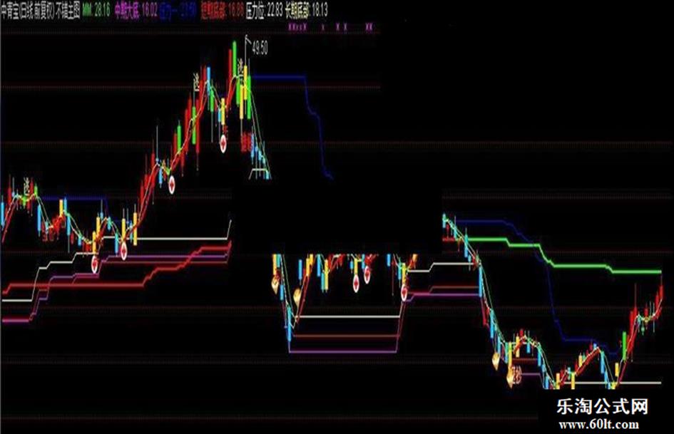 上升:IF(红轨道>=绿轨道,绿轨道,DRAWNULL),COLORRED,LINETHICK2;