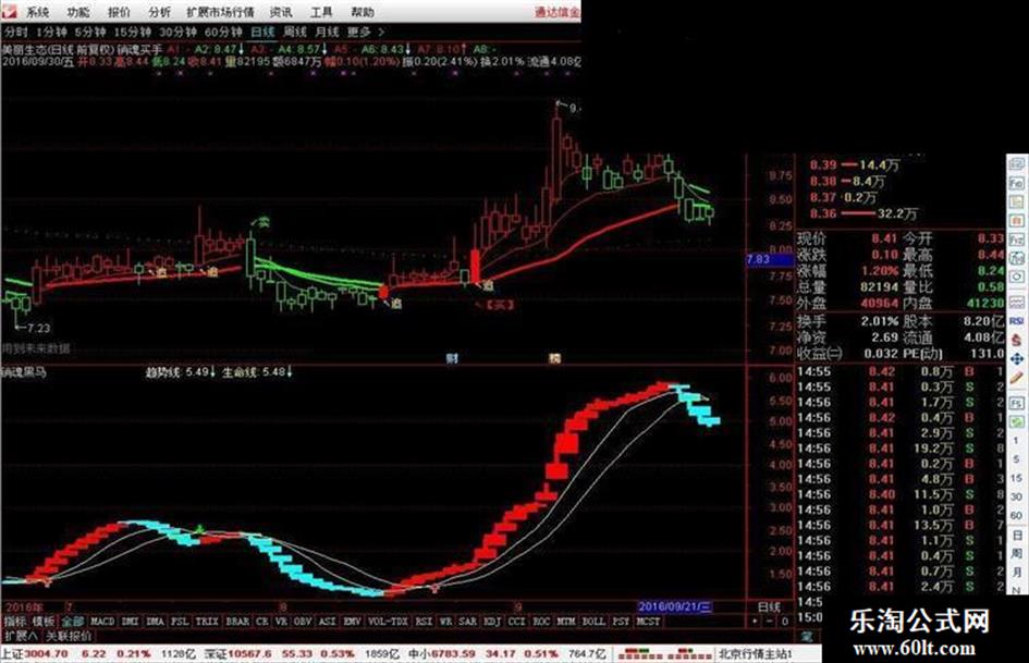幅图指标使用趋势线和生命线交叉确定买入和卖出的操作,并用红色和蓝色台阶辅助确定操作时间。指标使用简介:1,买入:当出现第一根红柱时可少量买入,当趋势线上穿生命线时加仓买入,只要趋势线大于生命线并一路红柱,就一直持有;