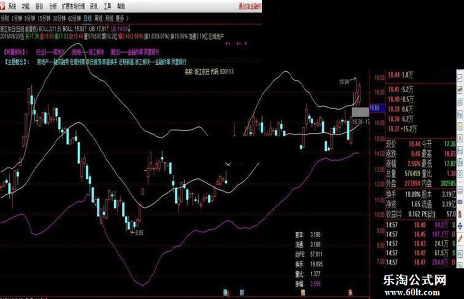 通通达信主图BOLL叠加指标,加入了“板块、概念、浮动涨幅换手等”,希望给股友带去帮助~~