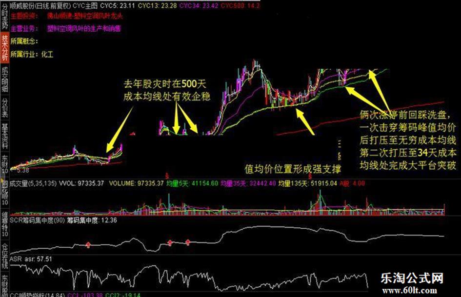 以下以个人长线持仓的顺威股份为例做一图片,可以明显看出,CYC成本均线要远比MA价格均线实际操作性更强。需要注意的是如果是中长线操作某一只股票,一定要结合筹码峰的变化,更能有效提高操作成功率