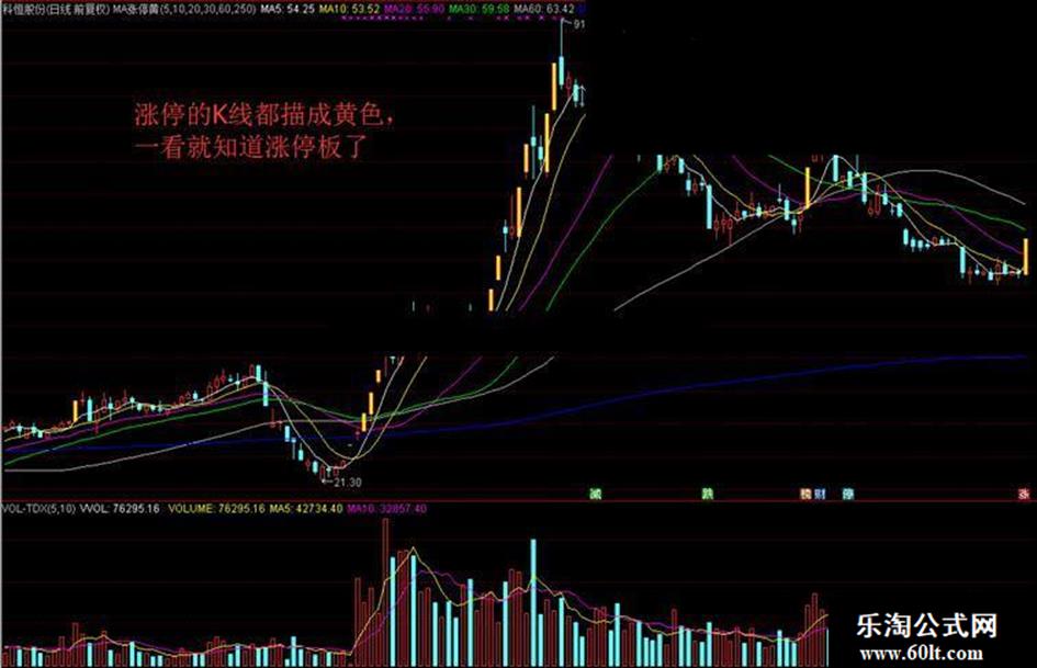 MA涨停黄就是把涨停的K线标上黄色,以便识别该股票有没有涨停基因,分析历史上该股票涨停有没有规律,进而及时发现并抓住妖股和强势股。