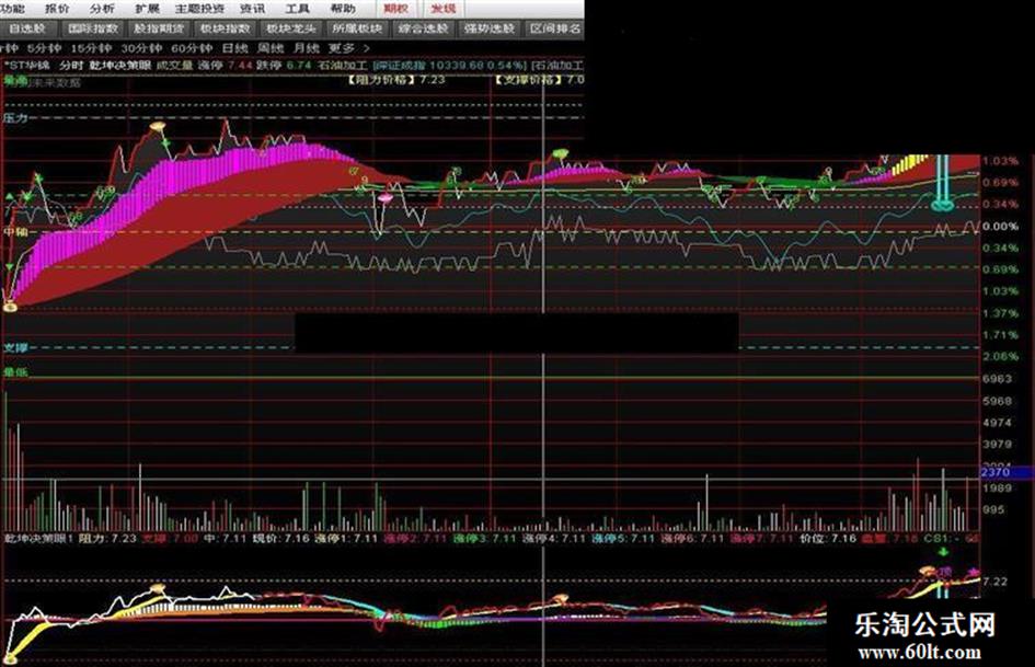 涨停2:IF(CROSS(KK1,KK2) AND 势涨,(阻力-中)/3+中,中),COLORLIMAGENTA,LINETHICK3;