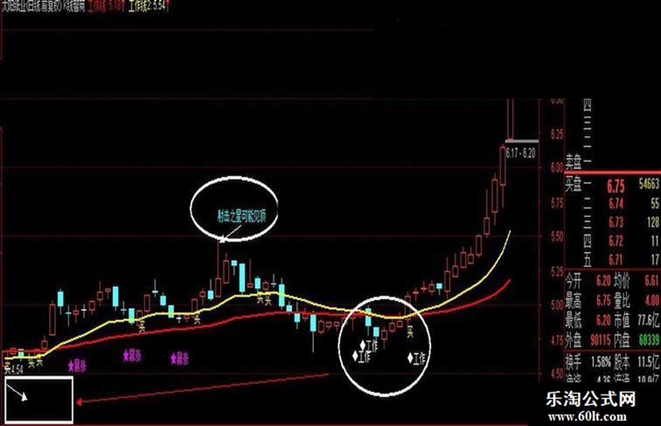 射击之星赋值:(((开盘价和收盘价的较小值 = 最低价) AND ((最高价 - 最低价) > (3 * (开盘价和收盘价的较大值 - 最低价)))) AND (收盘价 > 收盘价的5日简单移动平均))