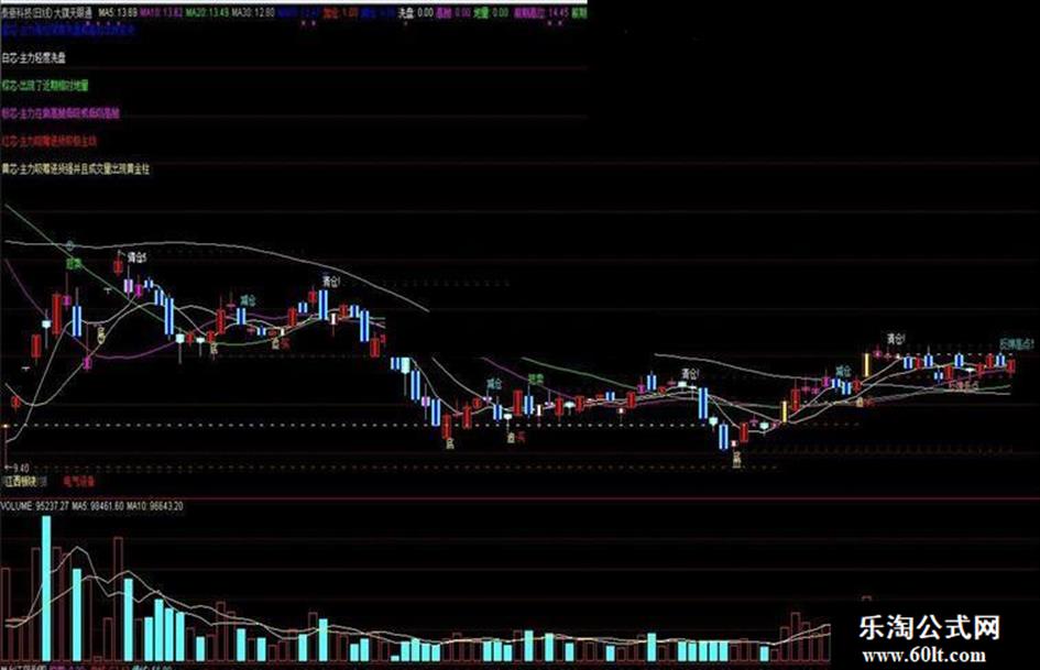 DRAWTEXT_FIX(1,0.00,0.3,0,'黄芯-主力吸筹进货强并且成交量出现黄金柱'),COLORYELLOW,LINETHICK1;