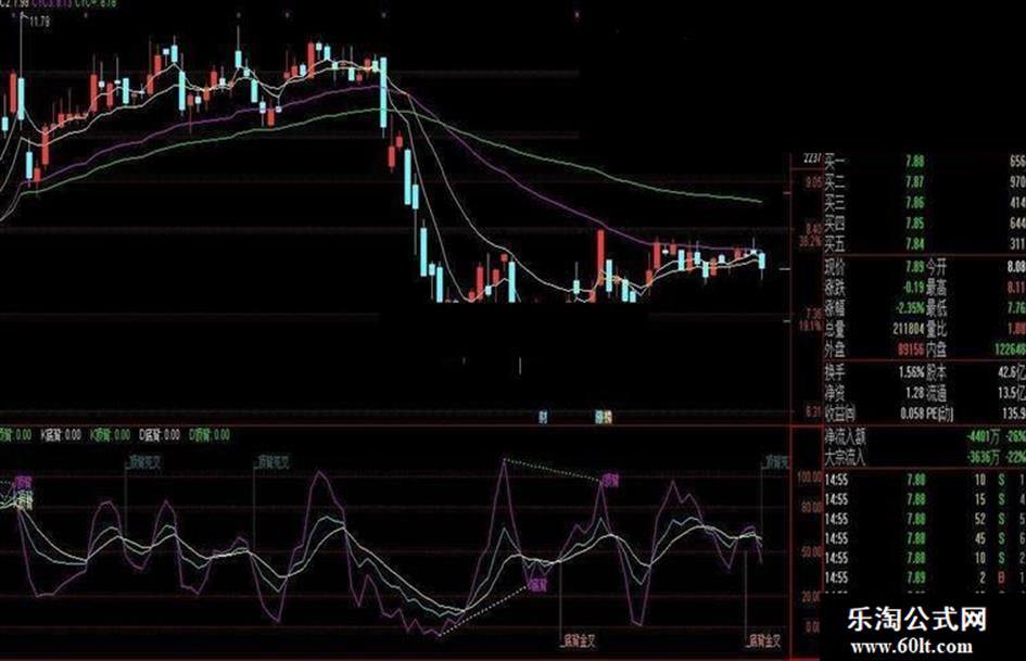 B2:=REF(C,A2+1)>C AND REF(K,A2+1)<K AND CROSS(K,D);
