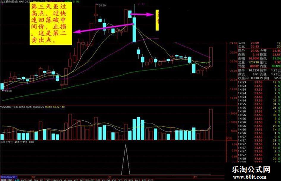 2,短线信号的出货点:结合盘中分时指标,短线的定义为3到8个点间,交易日定义为1到3个交易日,一般隔日冲高就出货。