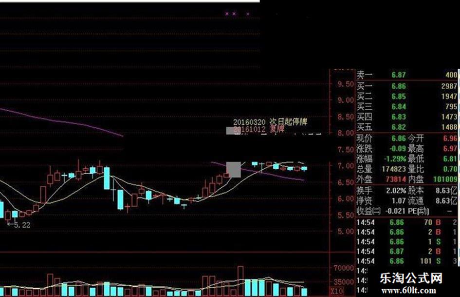DRAWTEXT(FP AND V=0,H*1.12,最近停牌),COLORWHITE;