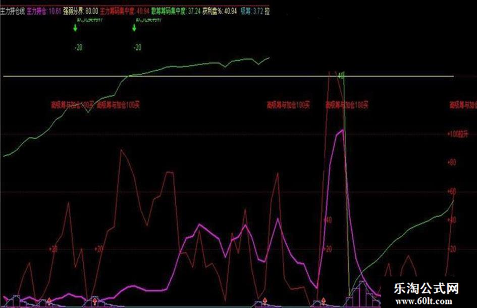 说明:结合主图判断底部吸筹情况和主力持仓是上升还是下降。主力持仓上穿散户筹码,主升浪买进,一路持有.十次八次成功,配合均线.主筹达到80%,散筹方向向下,说明主力已高度控盘筹码大部分锁定,等待主升浪。判买点.顶底,比较适合波段操作。