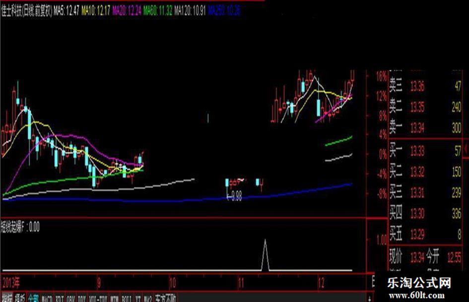 短线起爆:公式的原理是捕捉盘中对重要均线或前期高点的突破。可盘中预警,但记住凡事有两面性,突破有可能是假突破,突破之后可能会回落。因此我通常的做法是在尾盘最后十五分钟打开预警。或者收盘后选股,次日或后市买低开或回档。公式测试从2013年11月1日起至2013年12月13日止,预警符合条件的股票共152支,平均每天五支左右,具有一定的实盘价值。至于失败的例子,我没时间发了,你们下载后可以自己测试。牢牢记住一点:短线买的是突破,如果一支股票处于平台整理,缩量整理期间,我是看不见它的。预警的都是放量的阳线。止损线的设定:我通常是用跌破预警当日阳线实体的开盘价或最低价即止损卖出。