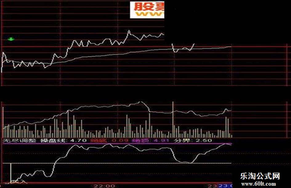 VAR1:=LLV(LOW,100); VAR2:=HHV(HIGH,250); 操盘线: EMA((CLOSE-VAR1)/(VAR2-VAR1)*5,5); 绝底:0.03,LINETHICK2,COLOR0000FF; 绝顶:4.91,LINETHICK2,COLORFF00FF; 分界:2.5,COLOR00FFFF; DRAWTEXT(CROSS(操盘线,绝底),0.2,'买入'), COLORYELLOW; DRAWTEXT(CROSS(操盘线,绝顶),4.6,'卖出'), COLORYELLOW; STICKLINE(CROSS(操盘线,绝顶),4.91,2.5,1,0); STICKLINE(CROSS(操盘线,绝底),2.5,0,1,0);