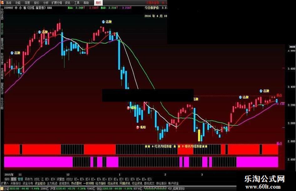 DRAWTEXT_FIX(1,0.5,0.84,0,'★★ A-红色均线持股 ★ ★ B-粉色均线持股★★'),COLOR00FFFF;