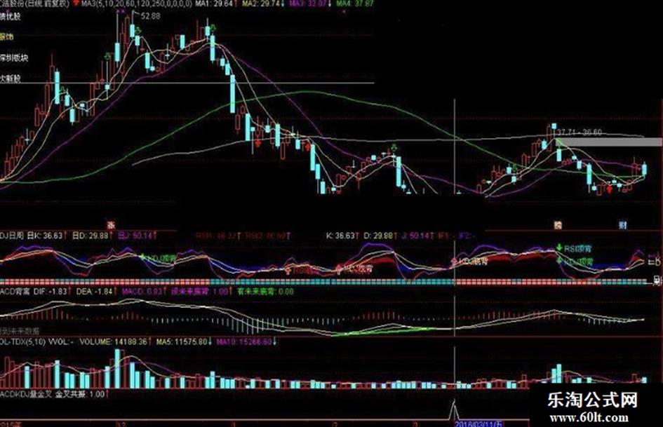 金叉共振:CROSS(DIF,DEA) AND CROSS(K,D) AND V>1.3*REF(V,1);