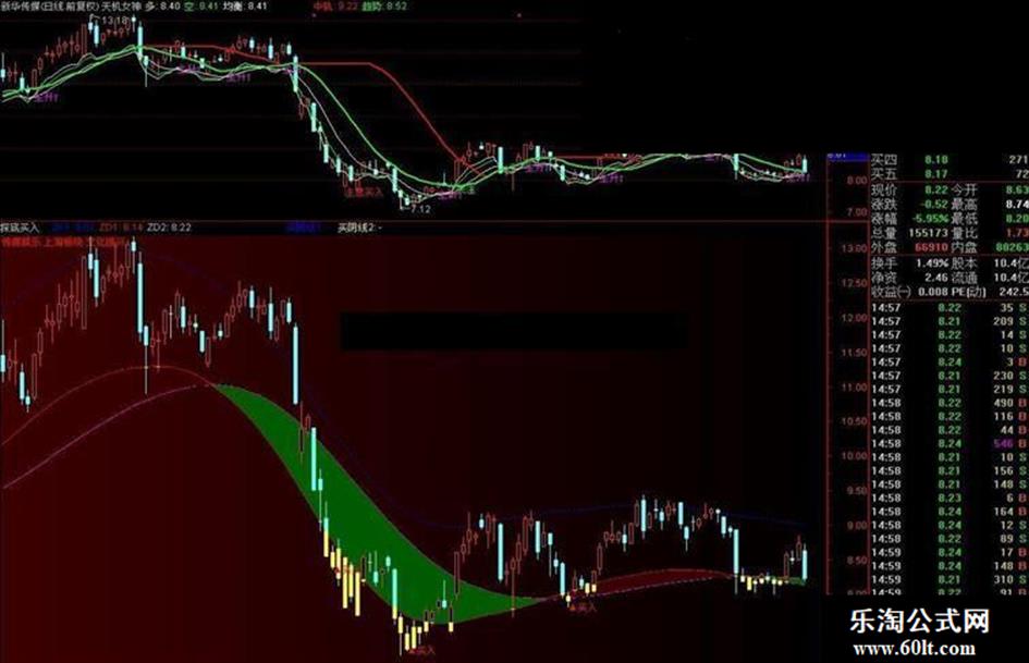 买阴线1:操作线<5 AND ZD1>ZD2 AND L<ZD1;