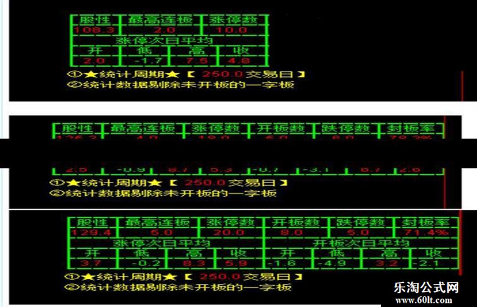 DRAWTEXT_FIX(CLOSE>0,0.79,0.05,0,'┃股性┃最高连板┃涨停数┃开板数┃跌停数┃封板率┃')COLORGREEN;