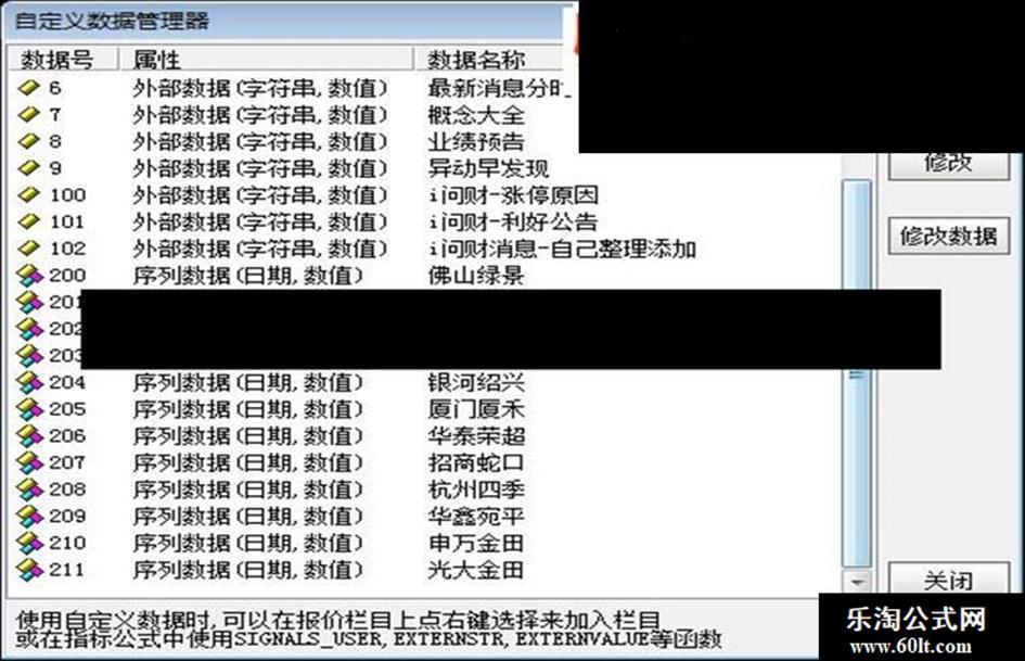 K线显示买卖席位明细!(指标 主图叠加 通达信 贴图) 如图所示: 外部数据的按这个编号创建并导入。 附件有这12个席位 近1年的买卖数据。 自己每天可以再更新手动添加。或者再添加其余的自己关注的席位。