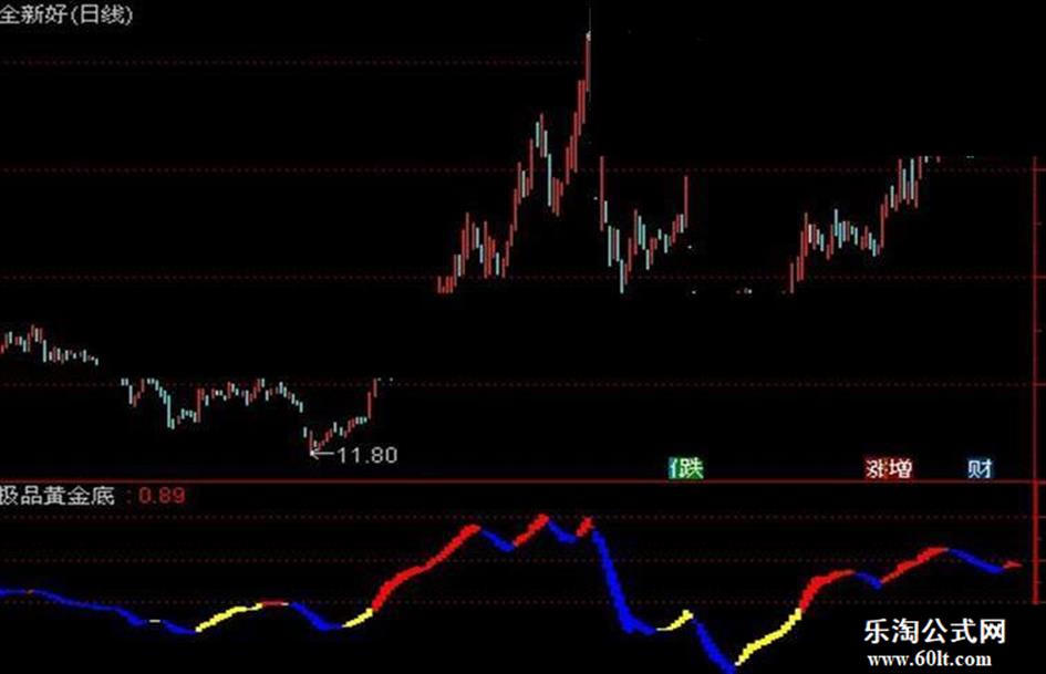 红色表示处于强势行情中,蓝色代表弱势行情中,黄色是抄底时机。
