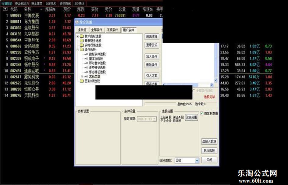 选股指标也在里面。选出来的股,如果在底部启动,60线走平或上行,胜率大。