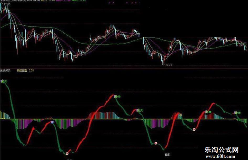 财:=(EMA(CLOSE,S)-EMA(CLOSE,P))*10,COLORRED,LINETHICK2;