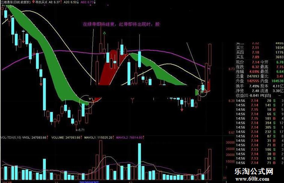 说明:在绿带即将结束,红带即将出现时,股价在A8上方逢低介入。用选股很难表达出来