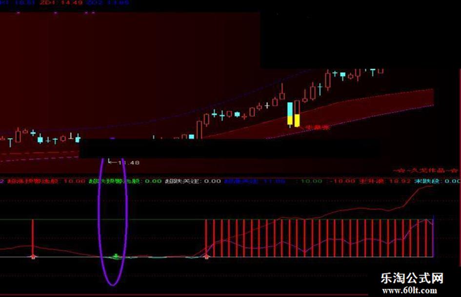 说明/本指标非本人制作,在此感谢原创/此指标中的超涨超跌度、可以用来排序;数值绝对值从零变大、说明趁势明朗启动;数值越大、谁就是涨或跌得比较凶的。 2.超涨度从零变大,说明开始涨趁势了,可以考虑追涨;超跌度从零变负,说明开始跌势了,可以考虑杀跌。 3.超涨度到了10以上或超跌度到了-10以下许多,请你注意变盘;此后若转弯、指标会有竖棒线给予预警和选股。 4.超涨度在10以上拐头向下,请你做空头卖出的准备,选股条件为“ 超涨预警选股线”等于11,经测试10天5%信号量4万成功率67%。同样 道理,超跌度在-10以下拐头向上,请你做多头买入的准备,选股条 件为“超跌预警选股线”等于-11,多头测试10天5%信号量2.5万成功率73%。 5.任何一个好公式,也是难以或做不到百分百成功的。关健是止损, 才能让一个好公式成为赚大钱赔小钱的走向成功的公式。 关健还是这句话:一击不中、马上撤退、现金为王