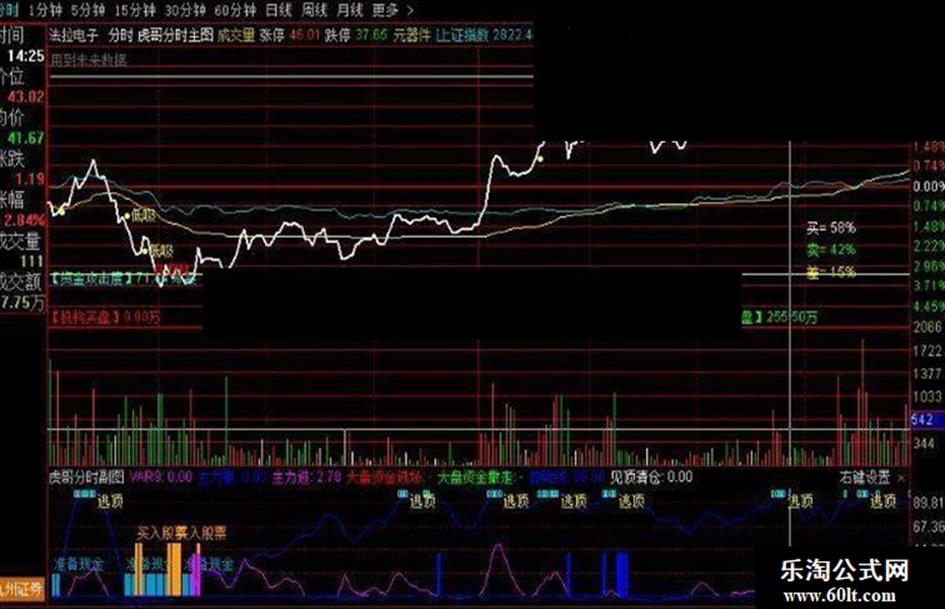 DRAWTEXT_FIX(1,0.250,0.8,0,STRCAT(STRCAT('【资金流量比】',CON2STR(资金流量比,2)),'%买')),COLORCYAN;