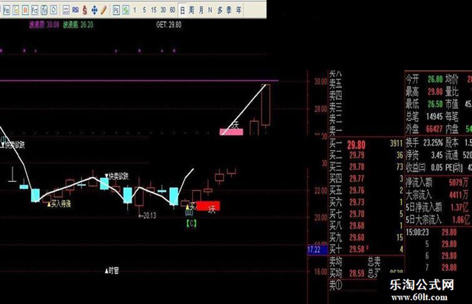 波浪底:IF(T2,B,B),COLOR80FF00,POINTDOT,LINETHICK2;