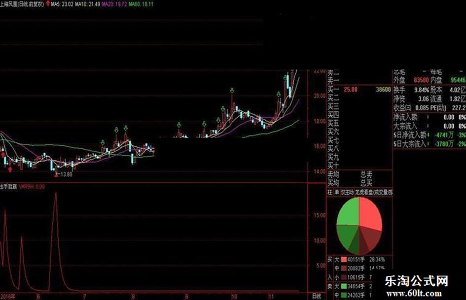 VAR8H:=EMA(IF(LOW<=VAR5H,(VAR4H+VAR6H*2)/2,0),3)/618*VAR7H;