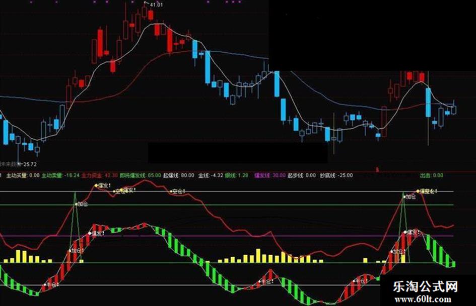 DRAWTEXT(CROSS(主力资金,即将爆发线),主力资金,'■加仓') ,COLORWHITE;