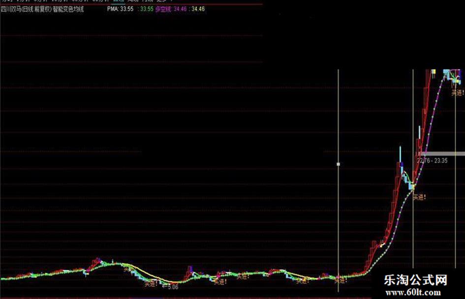 智能变色均线主图指标轻松抓黑马,四川双马的走势图,出现买进信号买入,一路持有直到出现平顶信号卖出,回调至均线又出线买进信号再次买入,一路持有直卖出平顶信号,轻松抓住大行情。