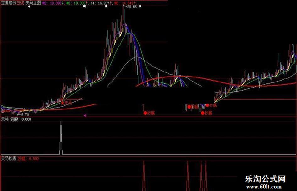 《天马主图》发出后,有坛友索取主图中抄底选股指标,现在就把副图和选股指标送给大家,使之形成一套完整的指标。